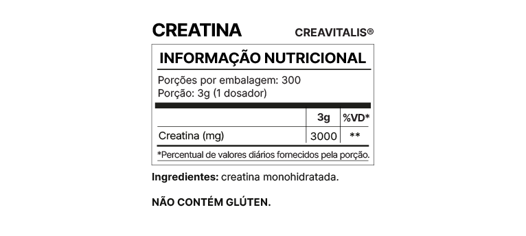 Quando você vê o selo Creavitalis®, pode confiar que está recebendo uma creatina de alta qualidade. Produzida na Alemanha, Creavitalis® é sinônimo de pureza e rigoroso controle de qualidade. 100% de matéria-prima de excelência, garantindo os melhores resultados para sua saúde e performance.