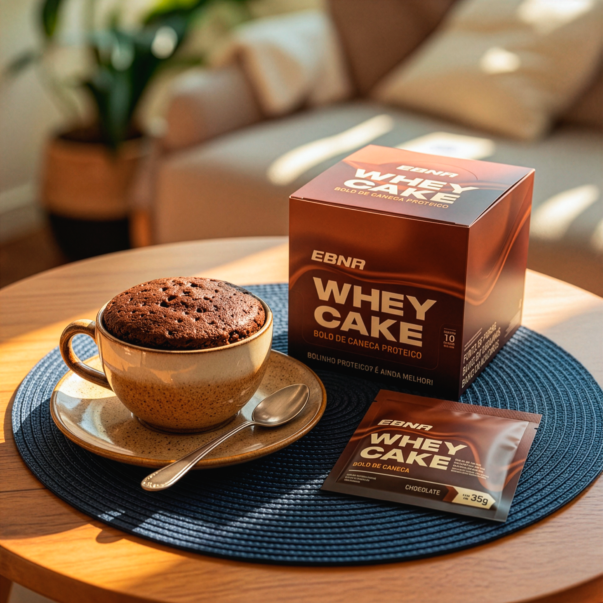 O WHEY CAKE é um bolo de caneca com 15g de proteína por porção, feito com ingredientes naturais como farinha de banana-verde, batata-doce e açúcar de coco.